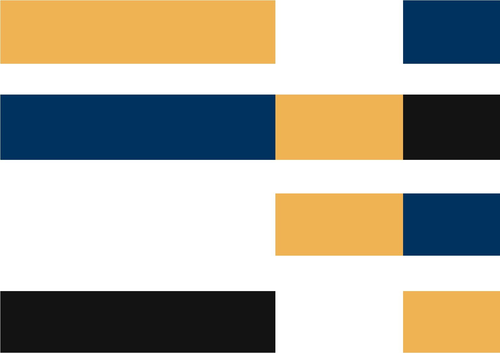 When utilising our brand colors, we recommend these four color pairings and the shown proportions for assets across the brand. These pairings were created to maximise harmony across the palette and allow for clear legibility when layering color on color.
