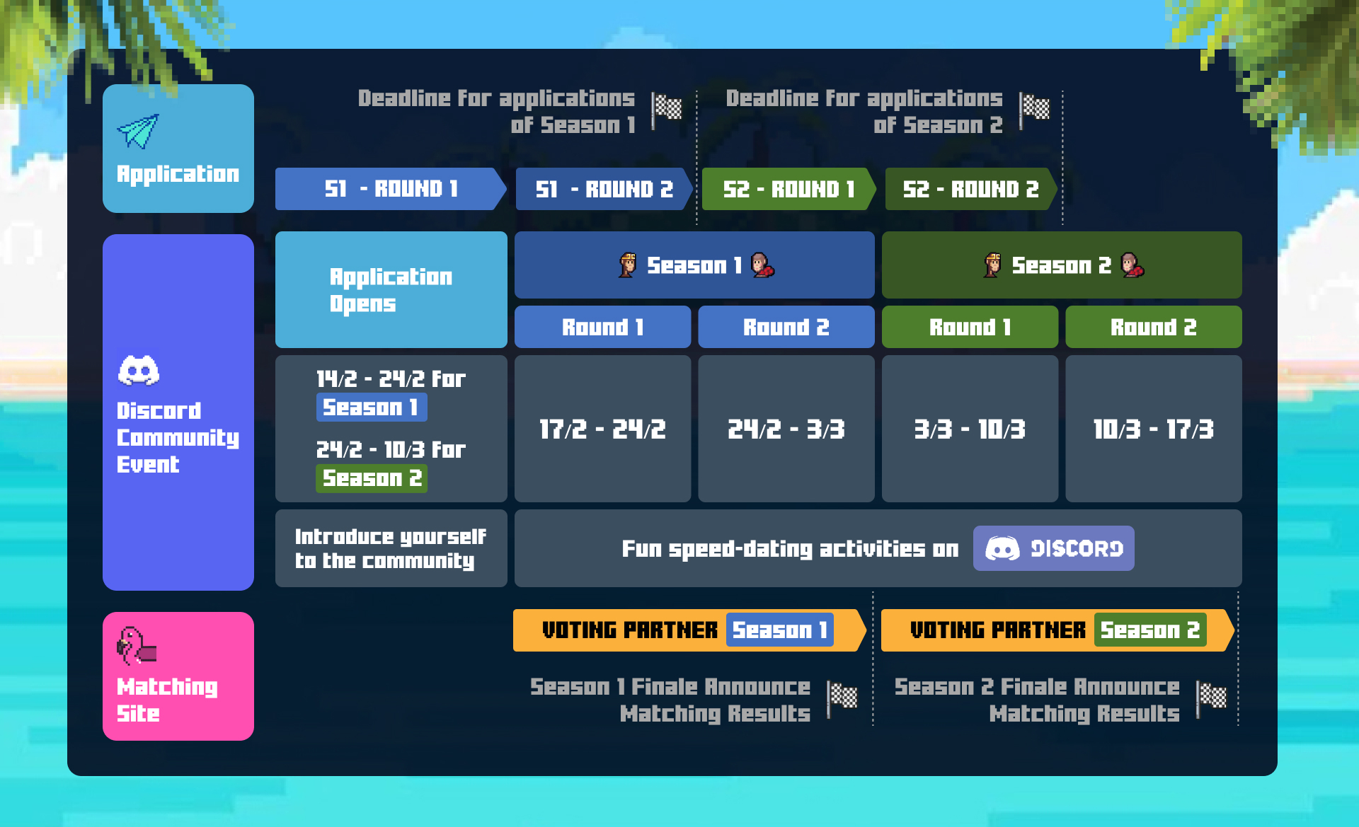 At the end of each Round, any mutual matches between a Wukong and Diamond Baepe were recorded and announced on our Discord.